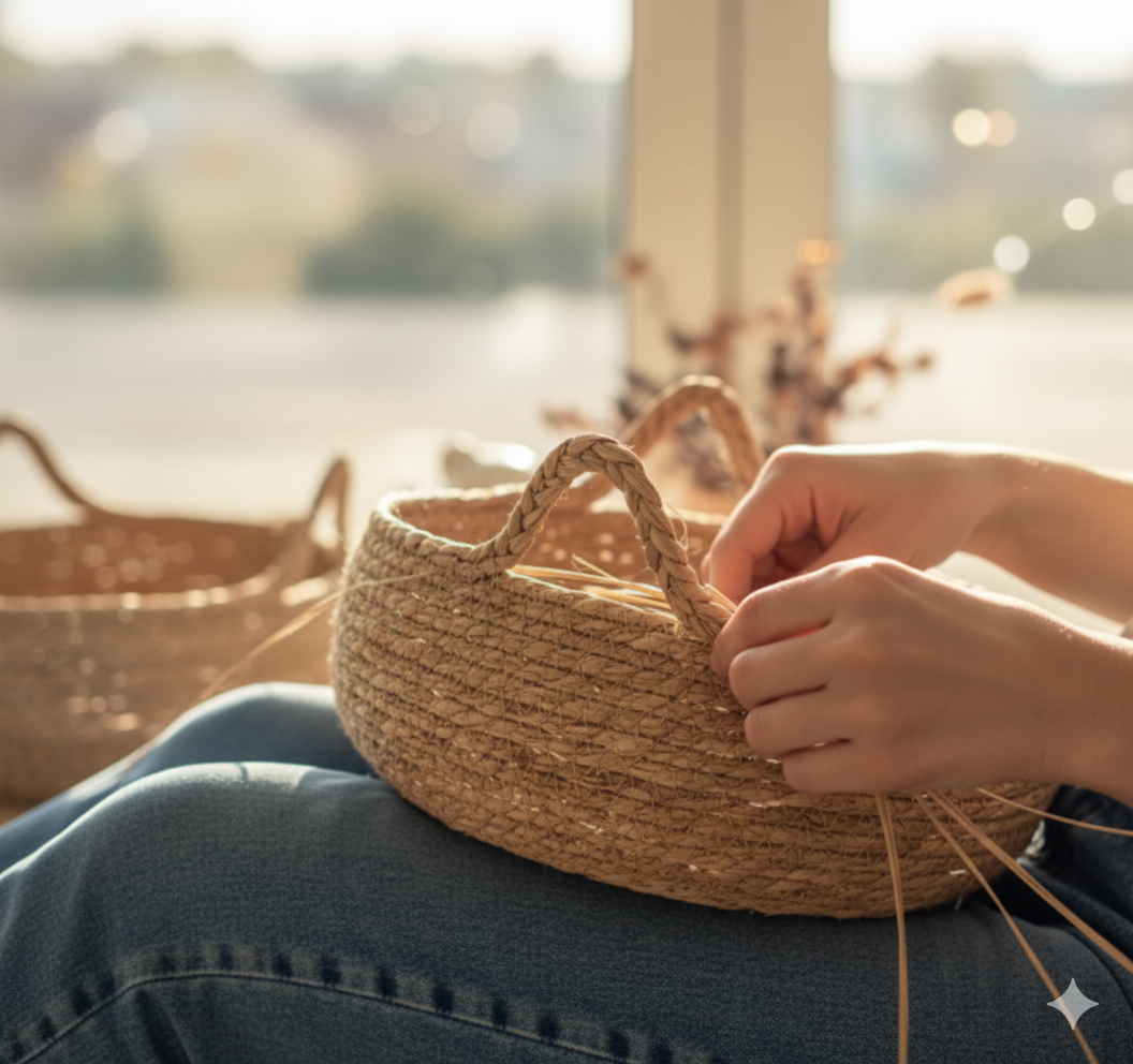 O ninho é cuidadosamente trançado à mão por artesãos, garantindo uma estrutura resistente, confortável e com um toque natural que nenhuma peça industrial consegue igualar.